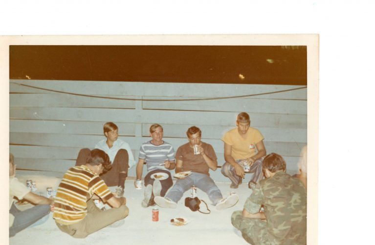 Enjoying a night off at the Airmen’s Club, Phan Rang AB, Vietnam. Friendship, food and beverages in the outdoor patio.